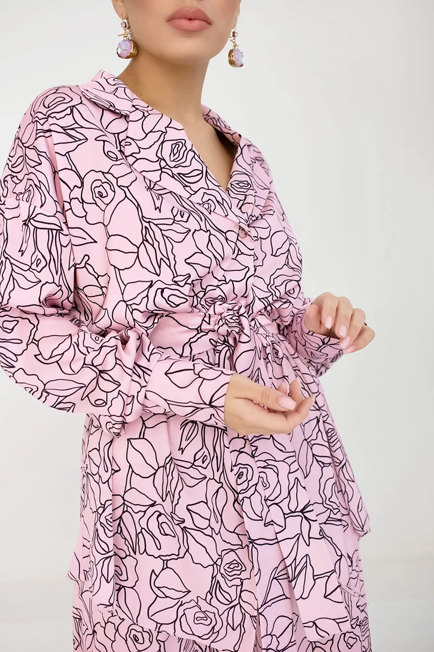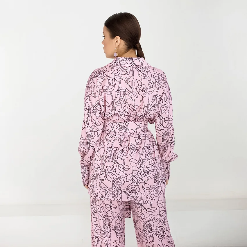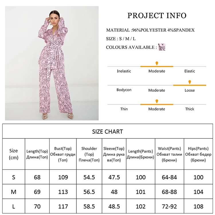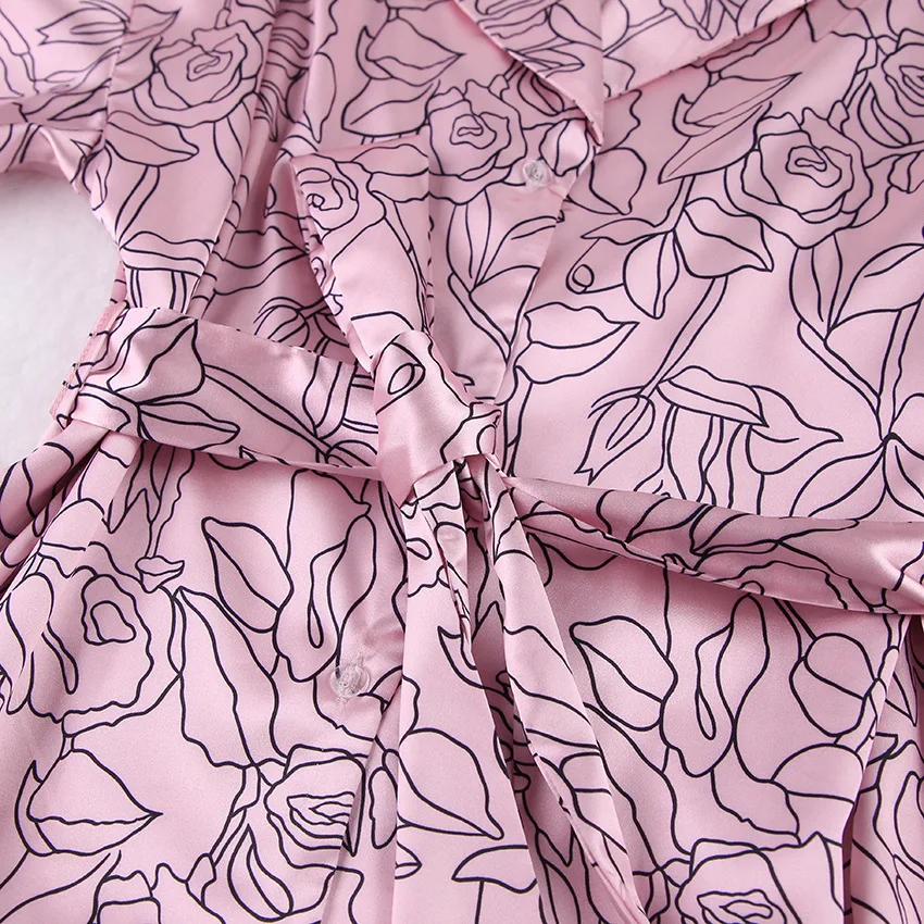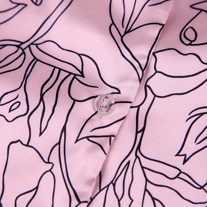 Flowers Print Feather Sleeves Sleepwear Abstract Pattern Loungewear Women Pajama Fashion Women's Clothing Sets Suit