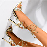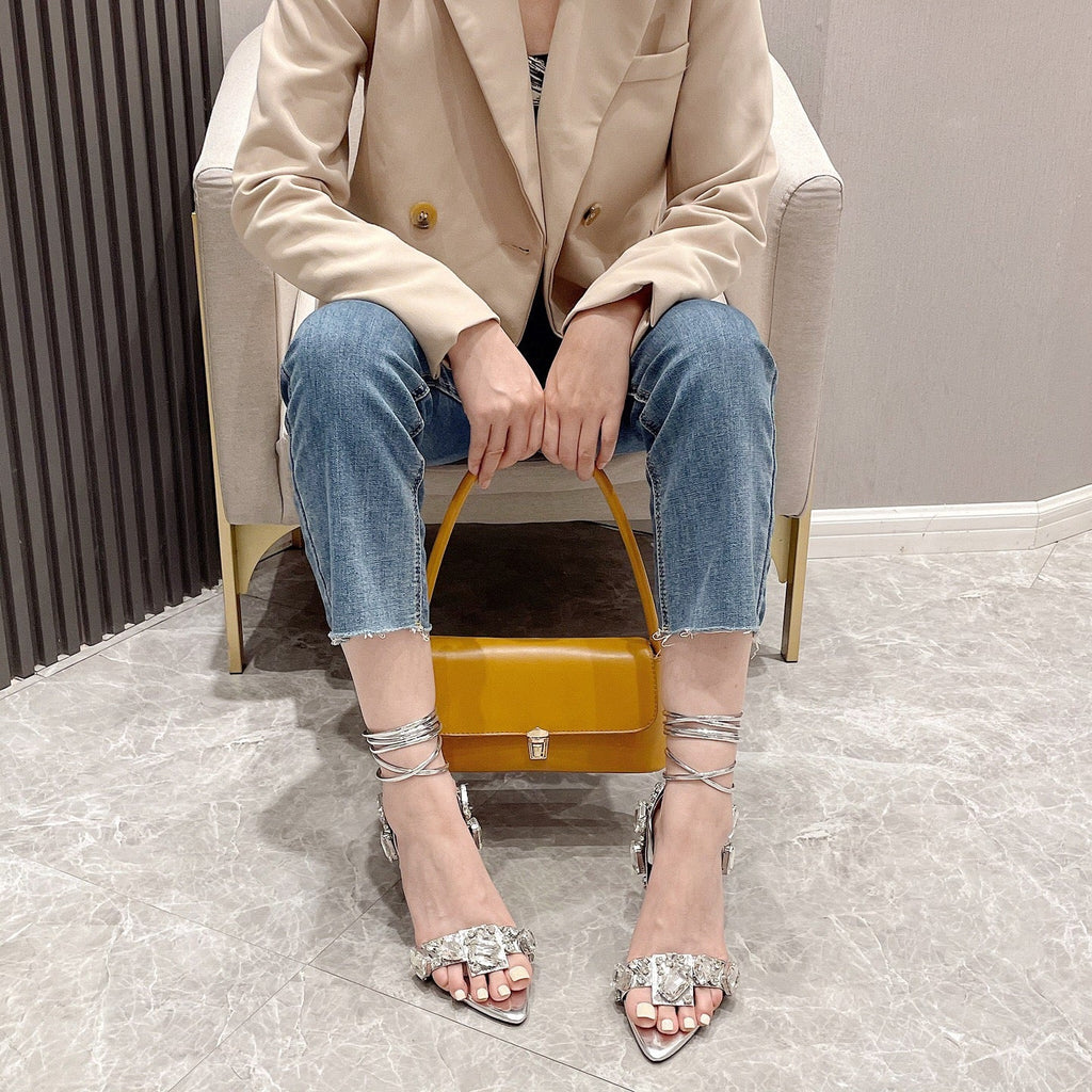 goosudu New Summer Women Sandals Female Pu Pointed Toe Crystal Fashion Pumps Ladies Solid Thin High Ankle Strap Sexy Shoes