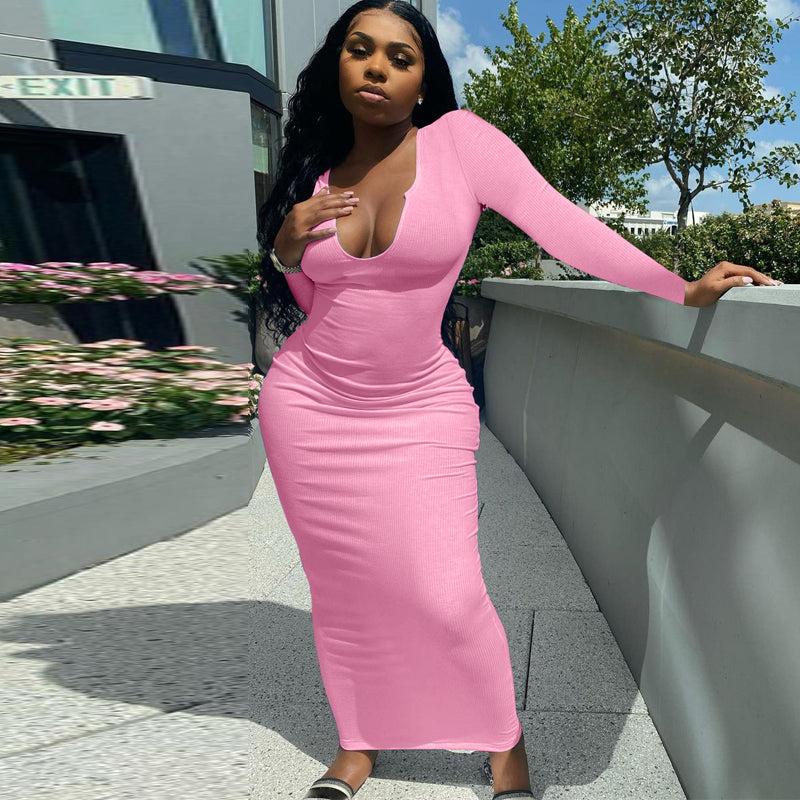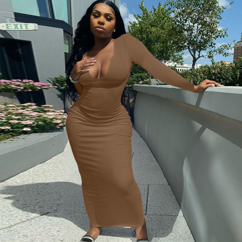 goosudu Long Sleeve Square Collar Ribbed Skinny Maxi Dress Summer Autumn Women Fashion Sexy Streetwear Lounghe Wear Y2K