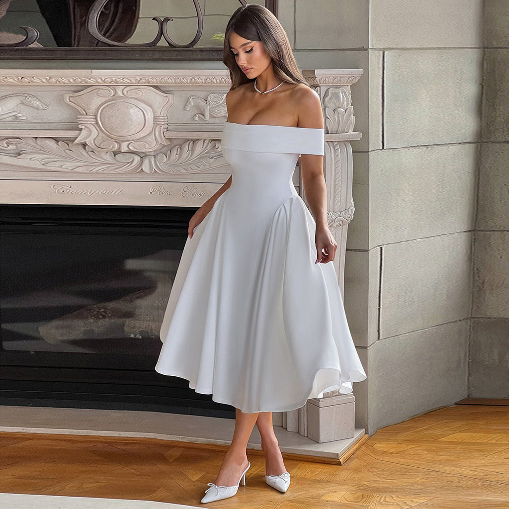 GOOSUDU New autumn popular women's dress sexy one-word shoulder short zipper temperament big swing dress women