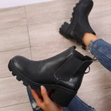 goosudu New Women Ankle Boots Crystal Rhinestone Slip On Platform PU Leather Women's Booties Spring Autumn Females Footwear Plus Si