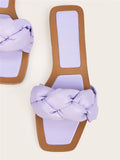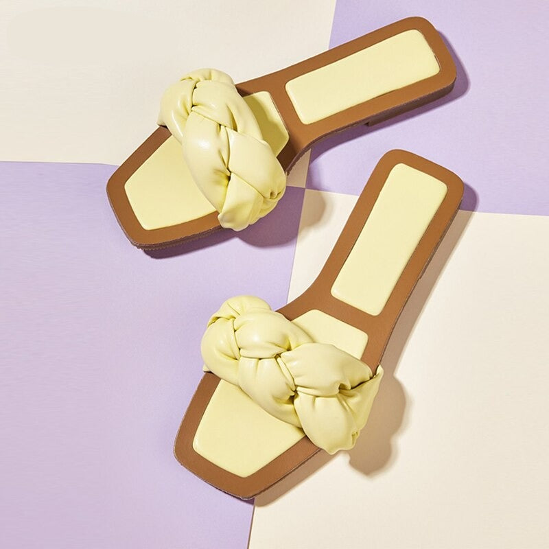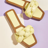 woloong New Design Weaving PU Leather Slip-On Women Flat Shoes Casual Beach Slippers Fashion Square Toe Ladies Sandals Slides