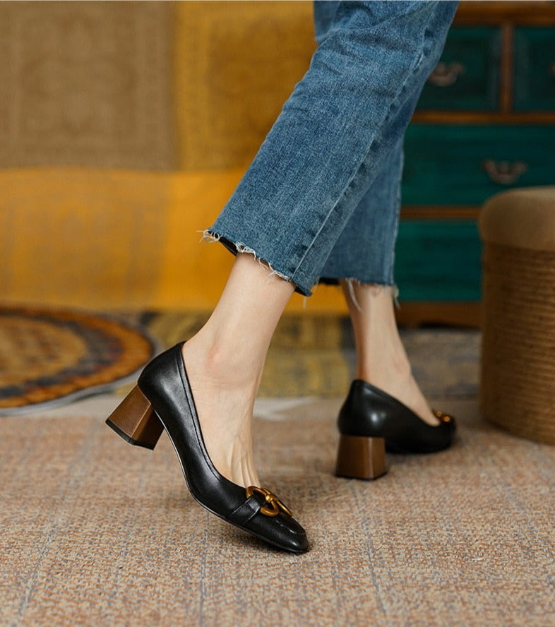 woloong New High Heels Shoes Women's Beige Apricot Elegant Metal Decorations Professional Style Shose Office Lady Pumps