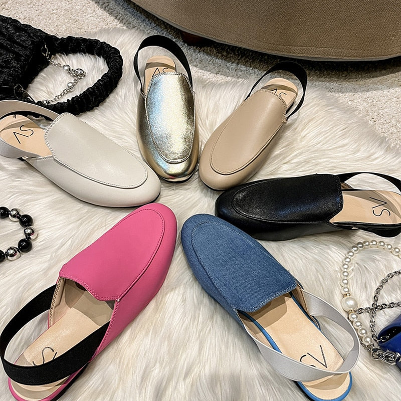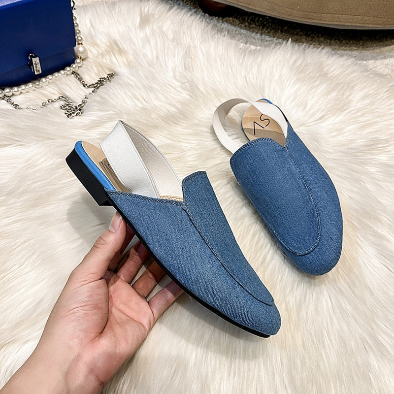 woloong Rear elastic belt half slippers women summer wear Muller shoes new flat sandals