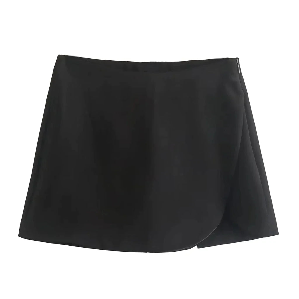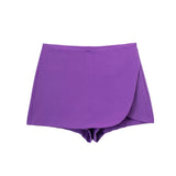 Women Fashion Casual Mini Asymmetrical Skirts Shorts High Waist Back Pockets Wide Leg Skirts Zipper Female Shorts