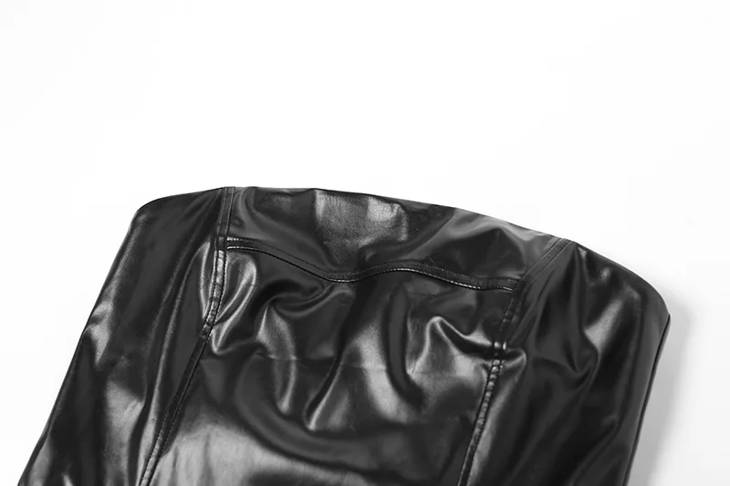 Patchwork Off-Shoulder PU Maxi Dress Female Solid Split Backless Slim High Waist Bandeau Dress For Women Fashion Y2k Dress