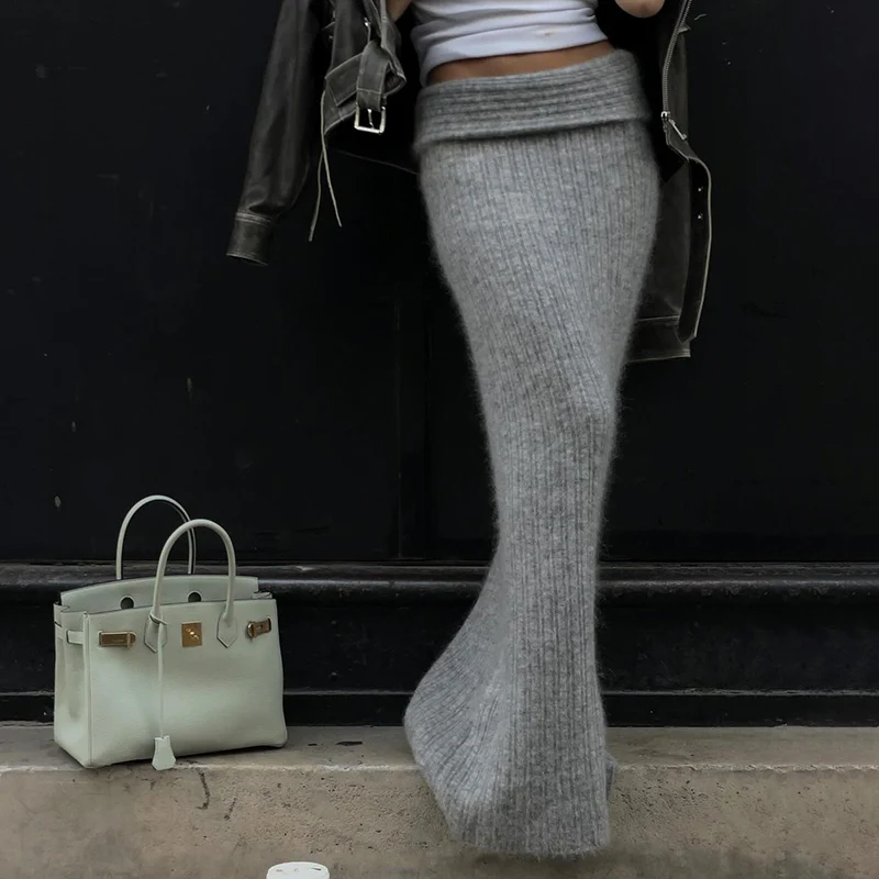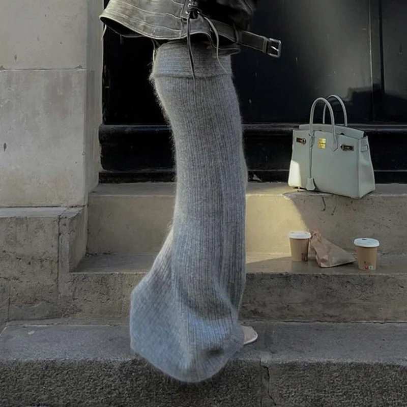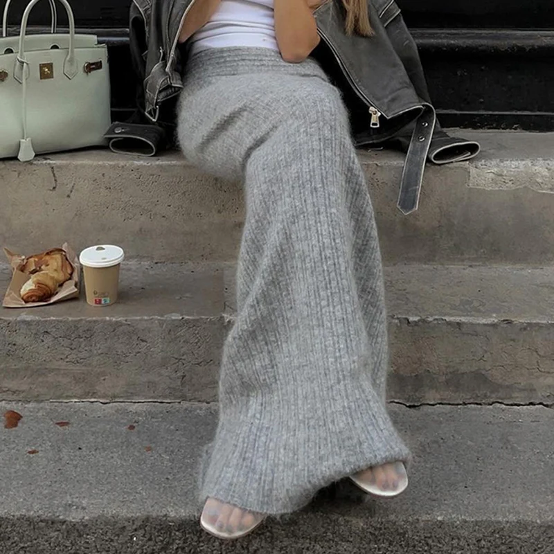 Autumn Winter Knit Skirt Fashion Street Style Low Rise Straight Long Skirts for Women y2k Harajuku Outfits Vintage Lady
