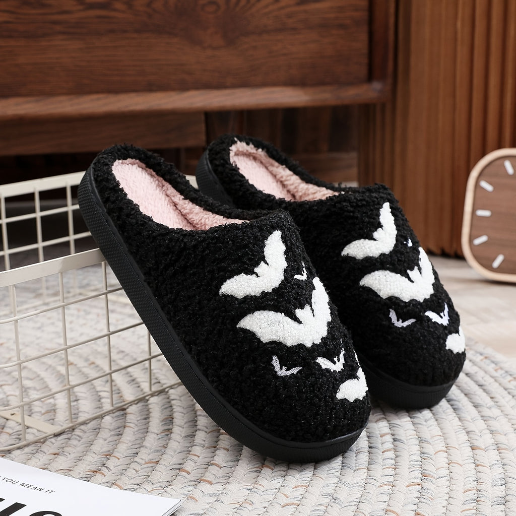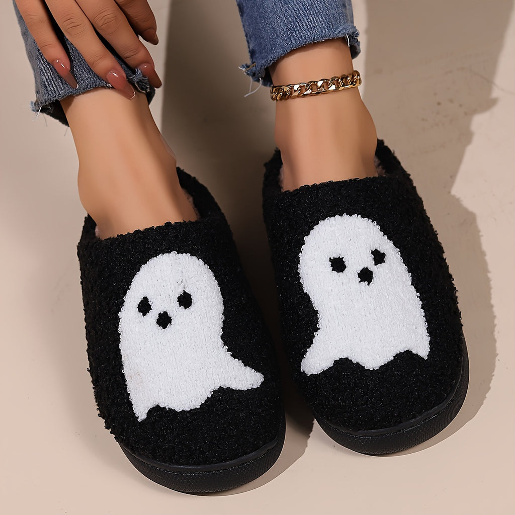 Cozy Halloween Cartoon Slippers - Warm, Plush Open-Toe Home Shoes with Strappy Back Support