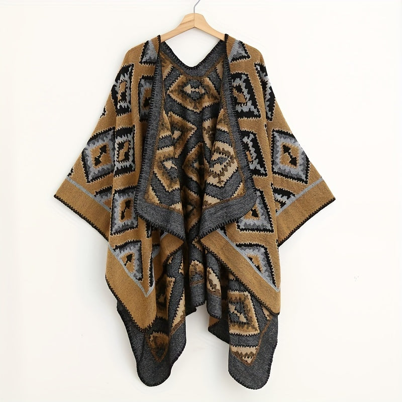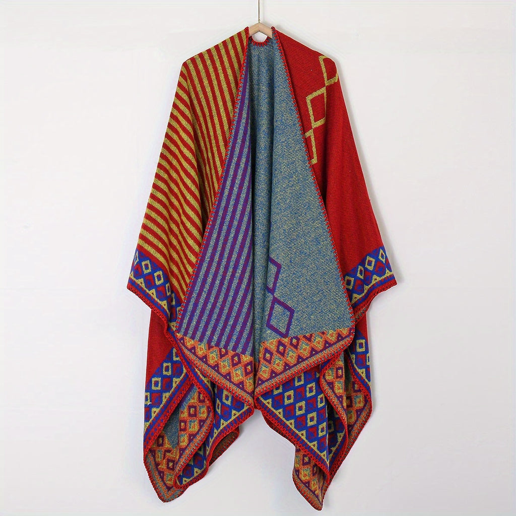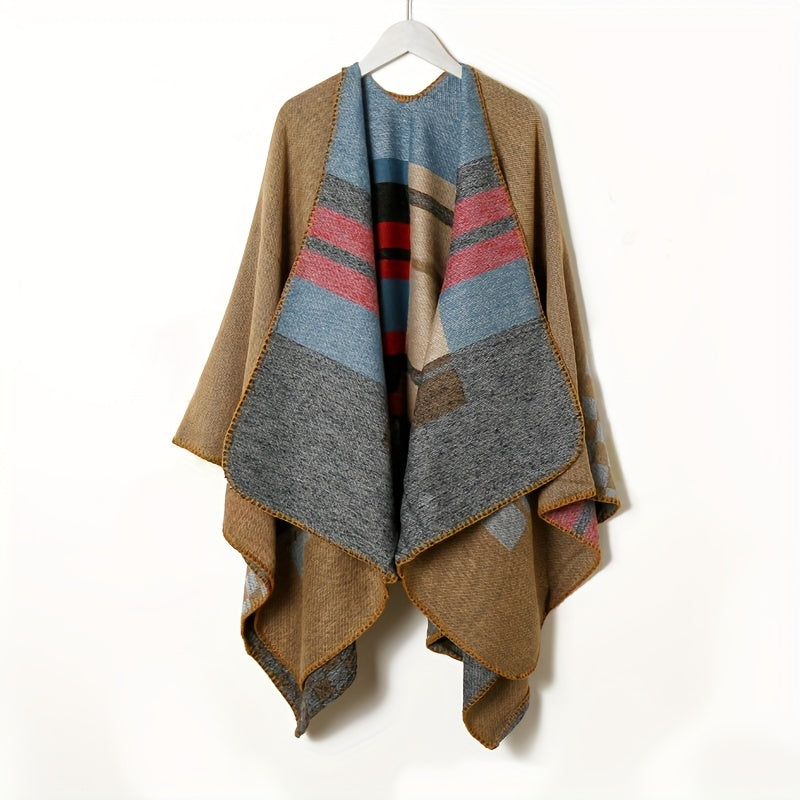 Cozy Oversized Plaid Print Blanket Shawl - Soft, Warm, Windproof, and Thick Cape with Classic Geometric Pattern for Outdoor Use - Perfect for Cold Weather, Camping, and Hiking