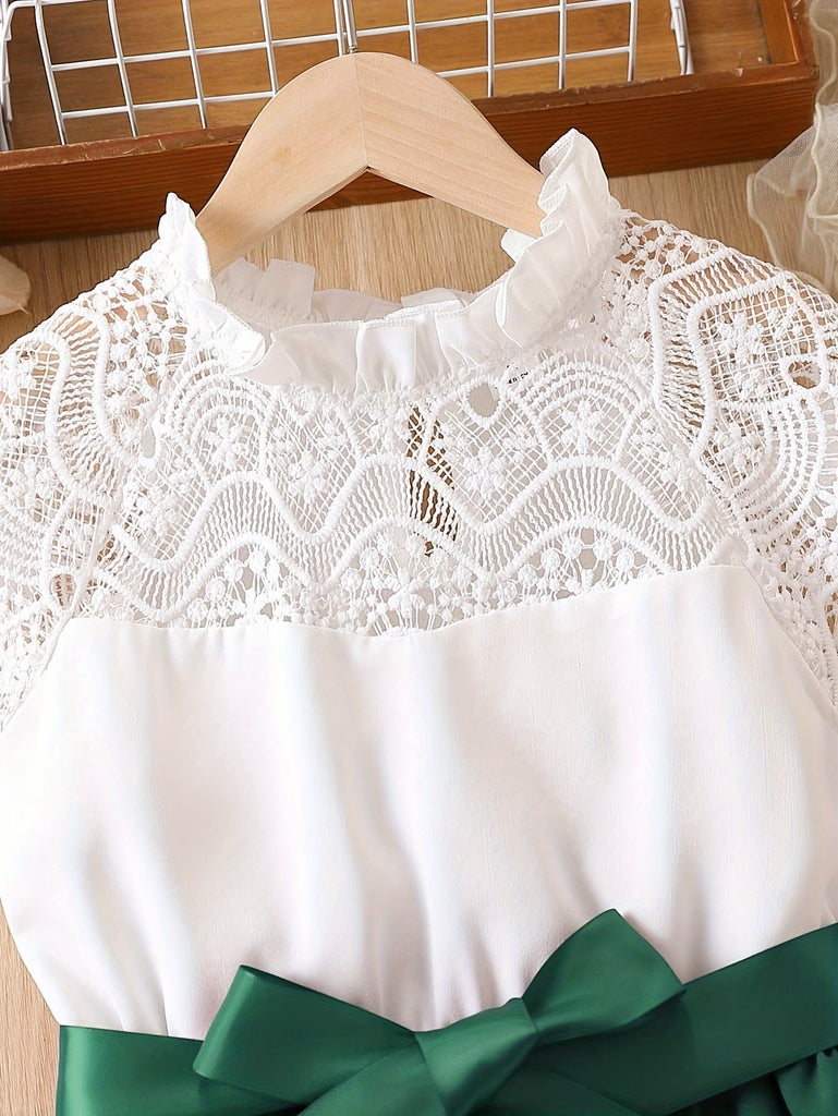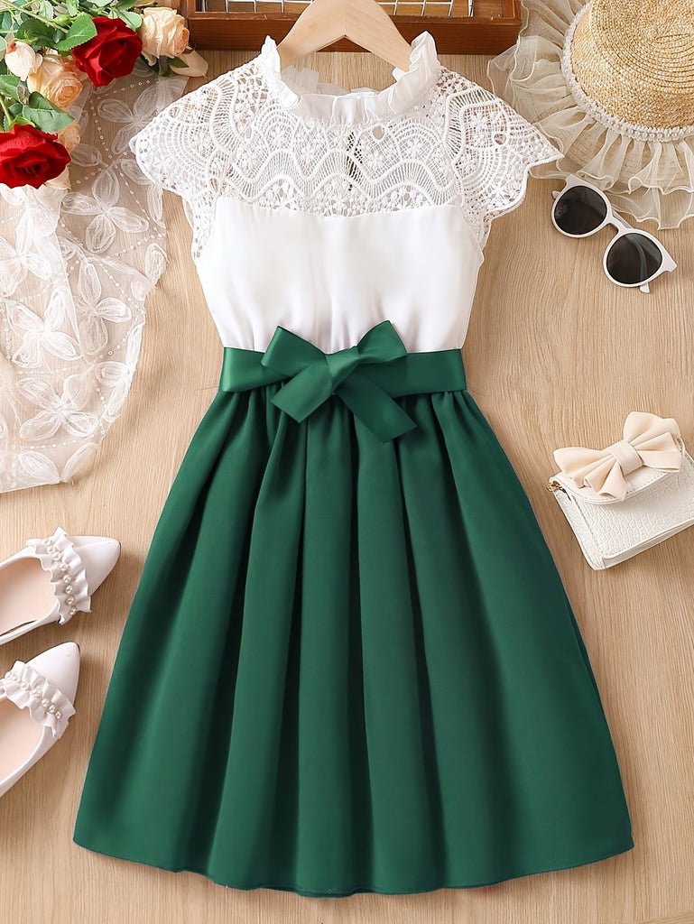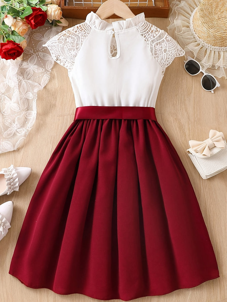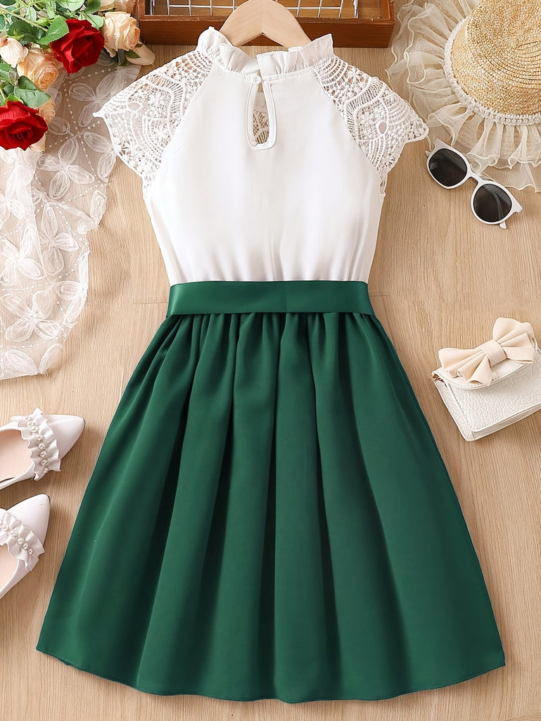 Girls Summer Peplum Dress - Contrast Mesh, Non-Stretch Polyester, Regular Fit, Machine Washable, Solid Color, Casual Style - Perfect for Outdoor Party and Holiday Gift