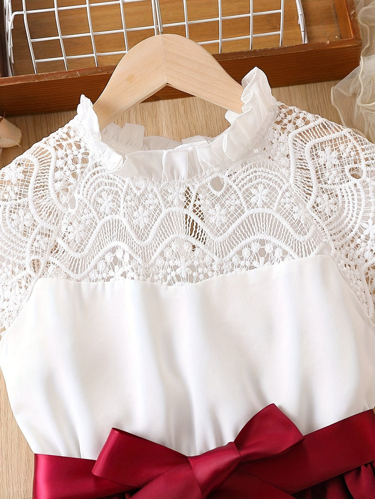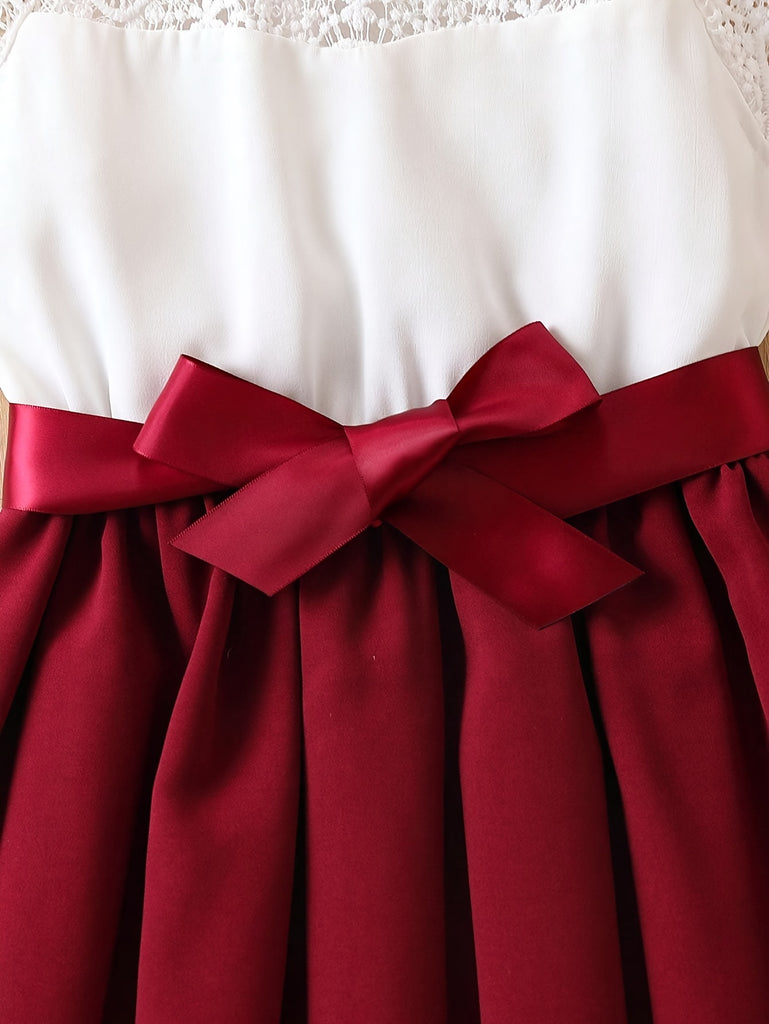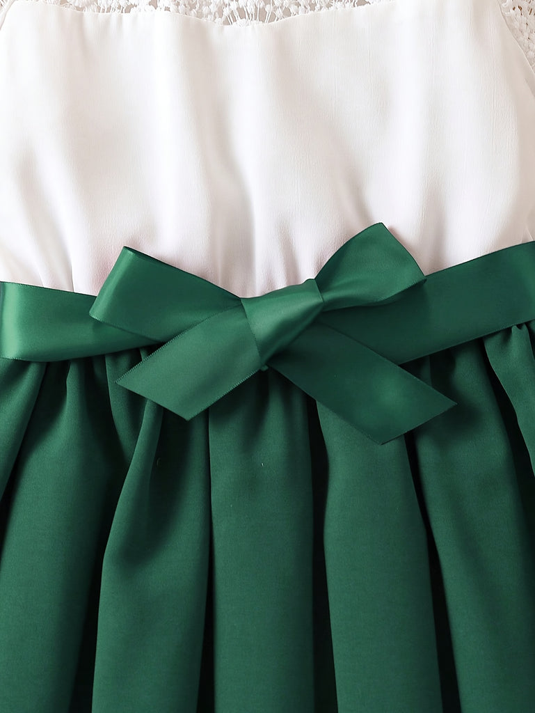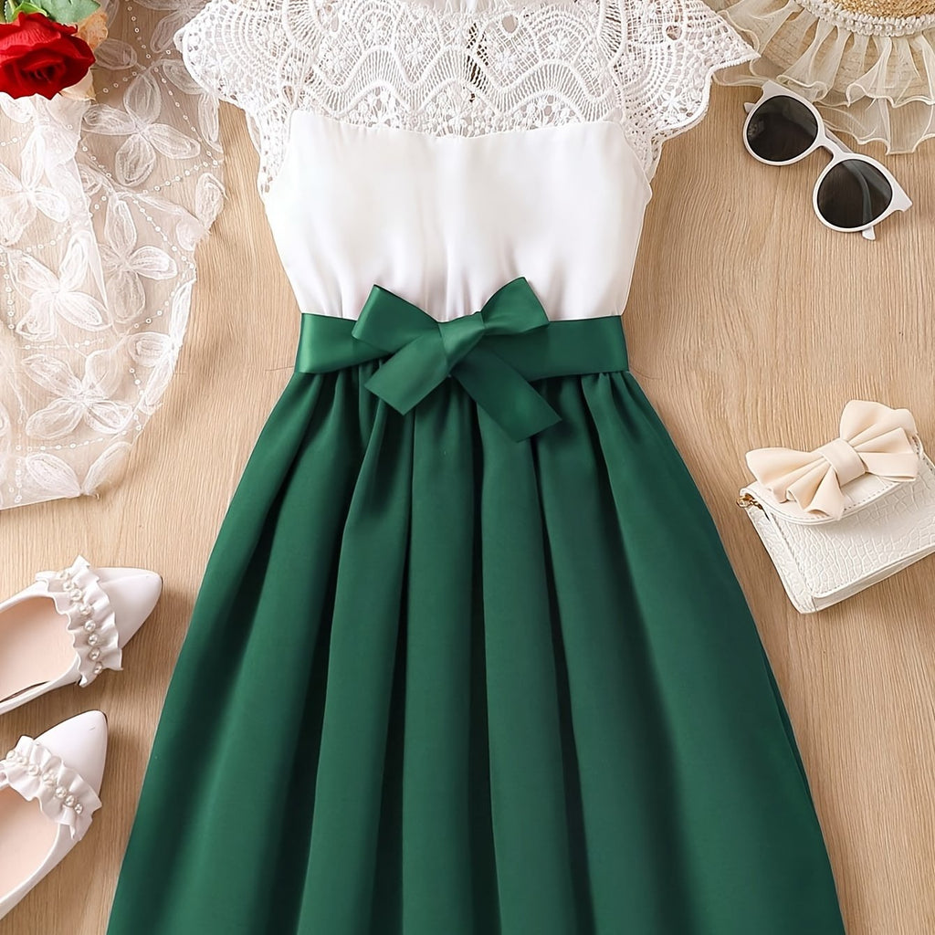 Girls Summer Peplum Dress - Contrast Mesh, Non-Stretch Polyester, Regular Fit, Machine Washable, Solid Color, Casual Style - Perfect for Outdoor Party and Holiday Gift