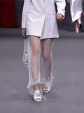 goosudu New Crystal Diamond Shiny Women Pants Summer Sexy Hollow Out Elastic Fishnet Trousers Fashion See Through Beachwear