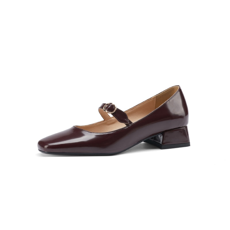 INS HOT Women pumps Genuine Leather shoes plus size 22-26.5cm Cow split leather Square toe buckle Mary Jane shoes 2 colors