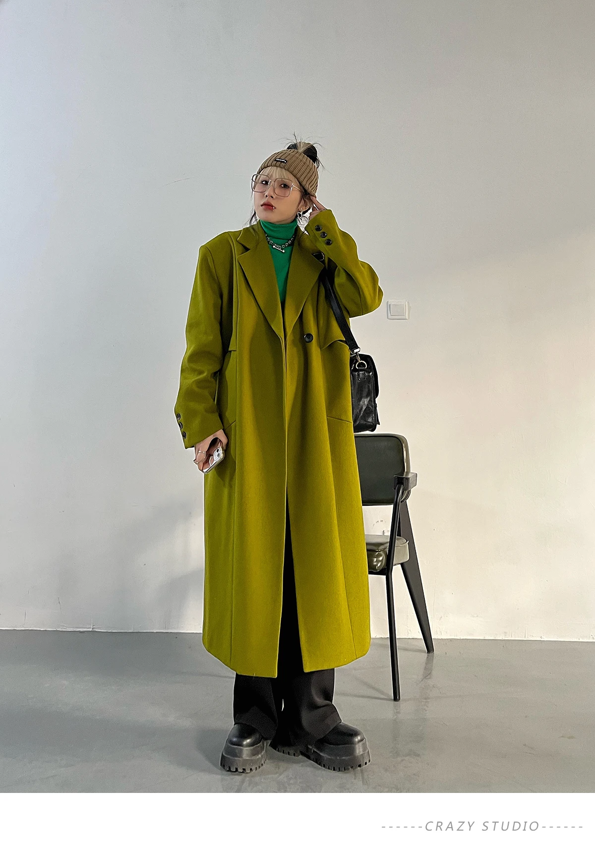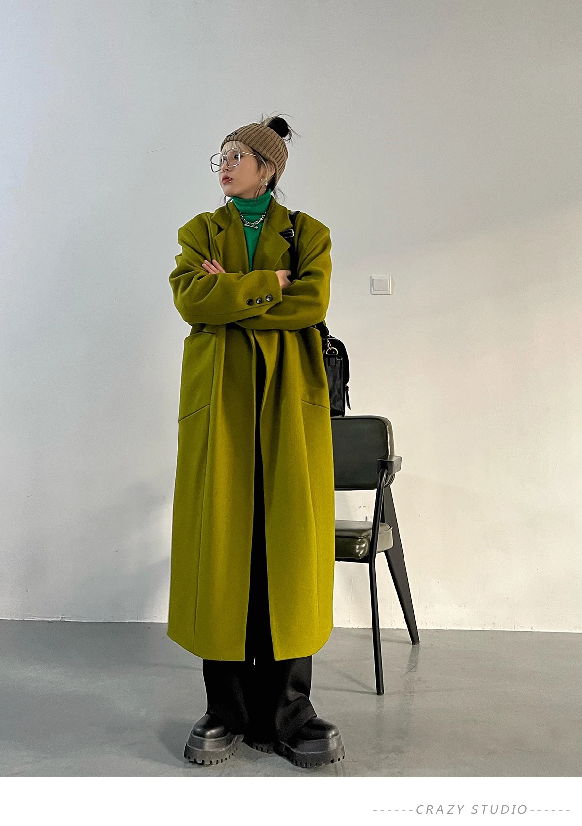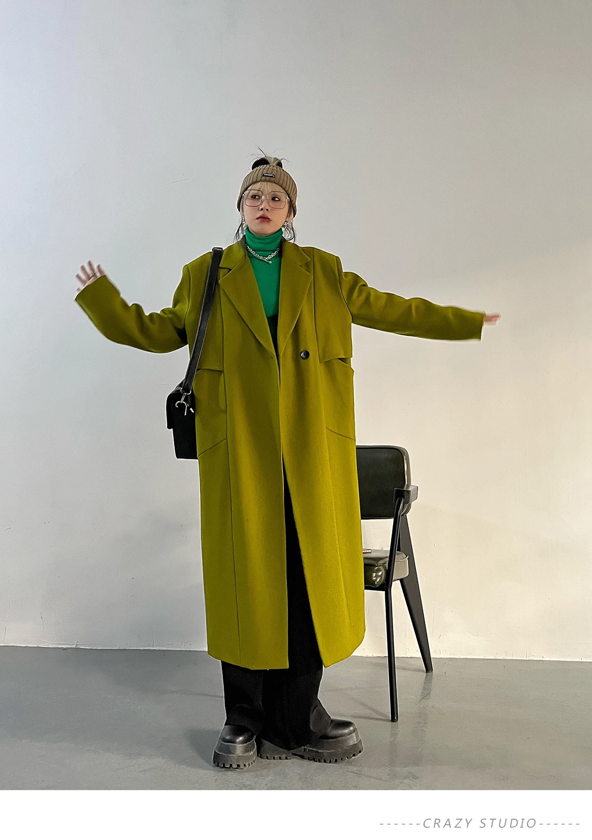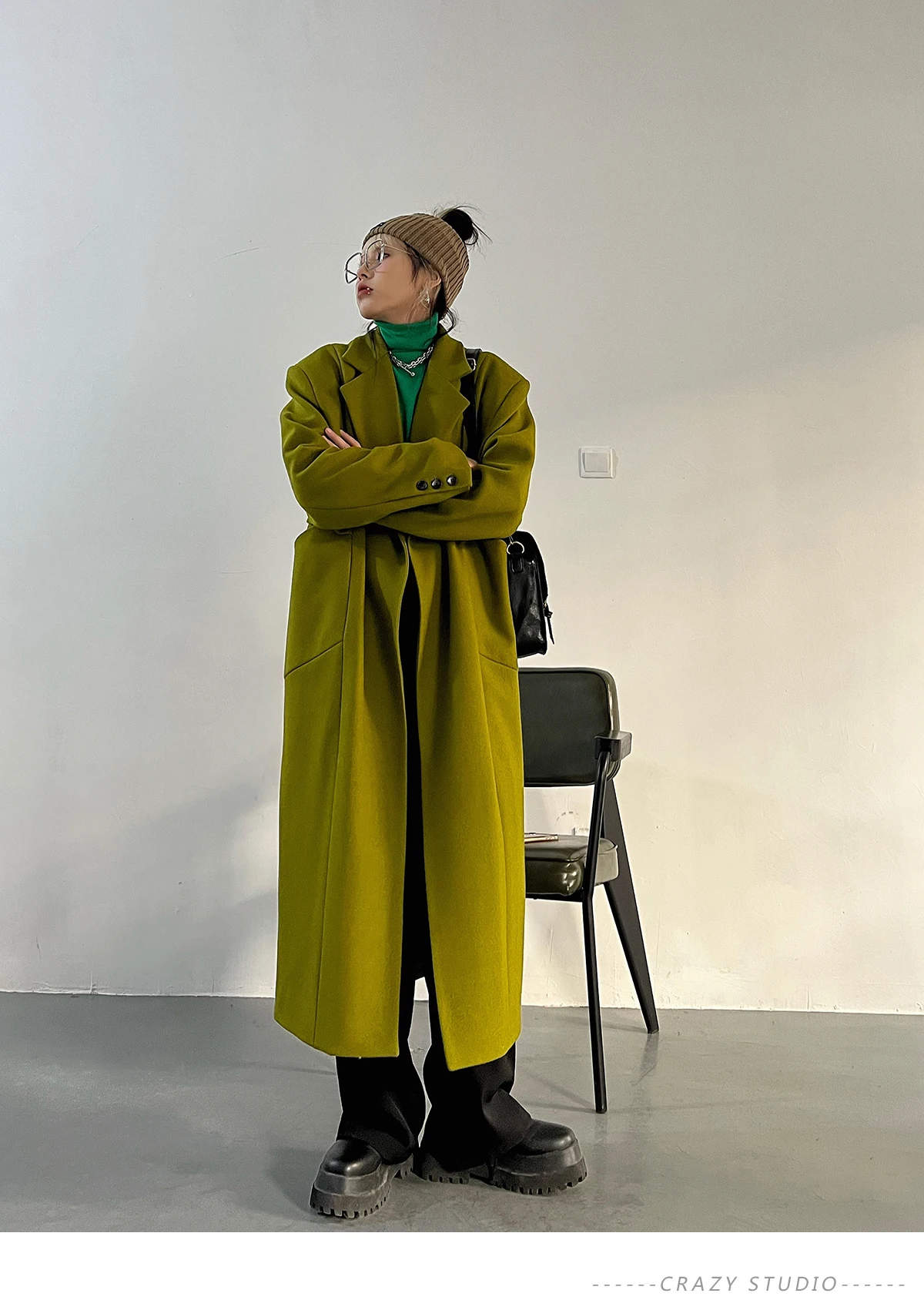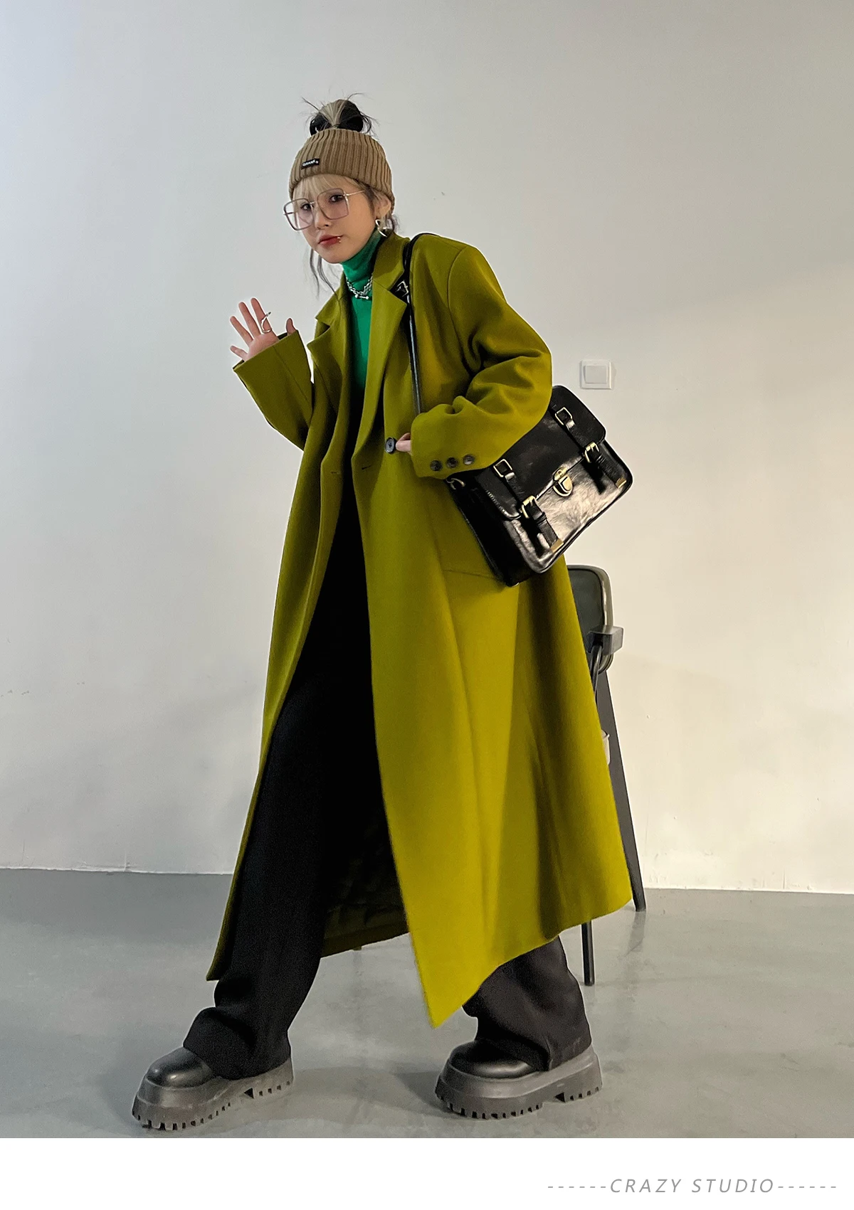 Lautaro Spring Autumn Long Green Oversized Trench Coat for Women Single Button Loose Luxury Casual Overcoat Korean Fashion