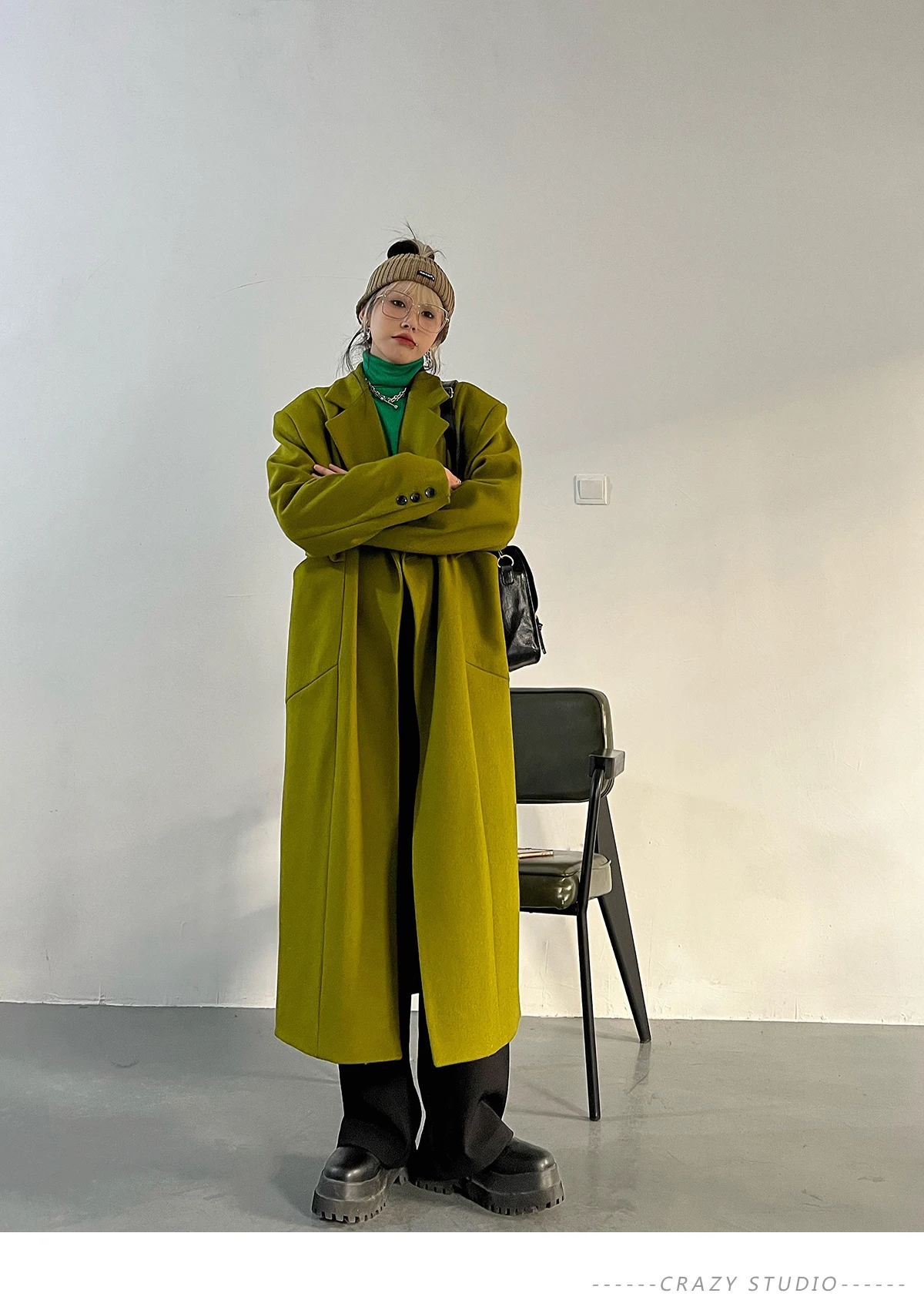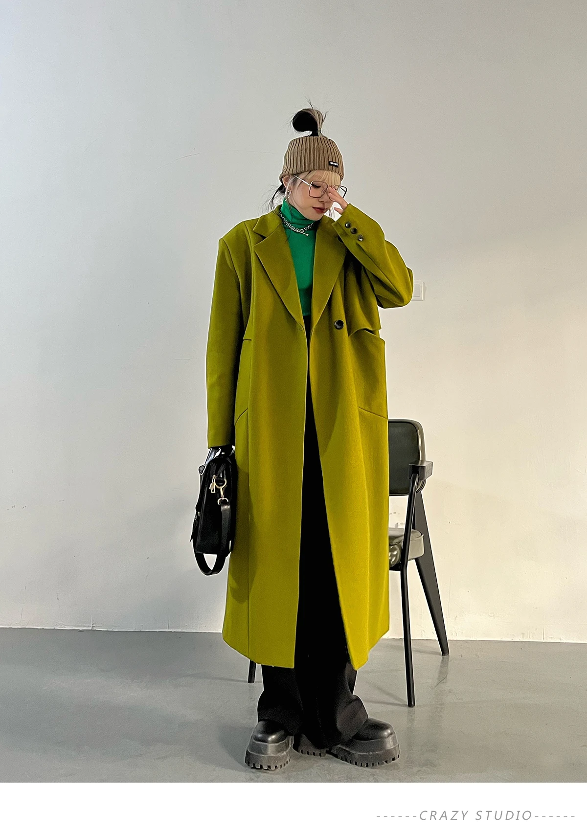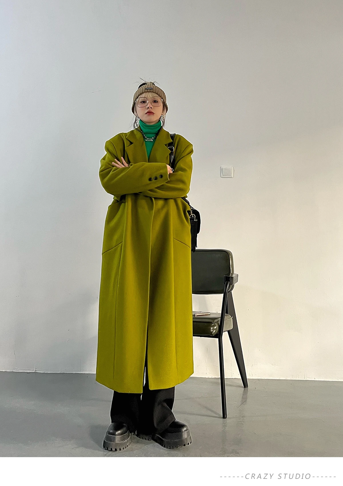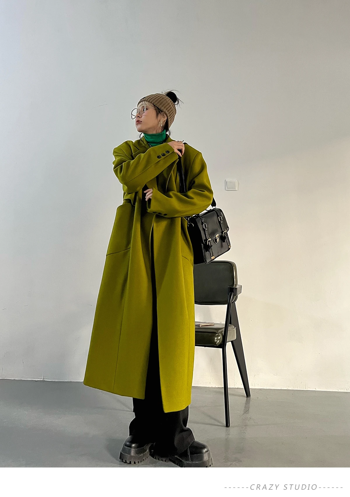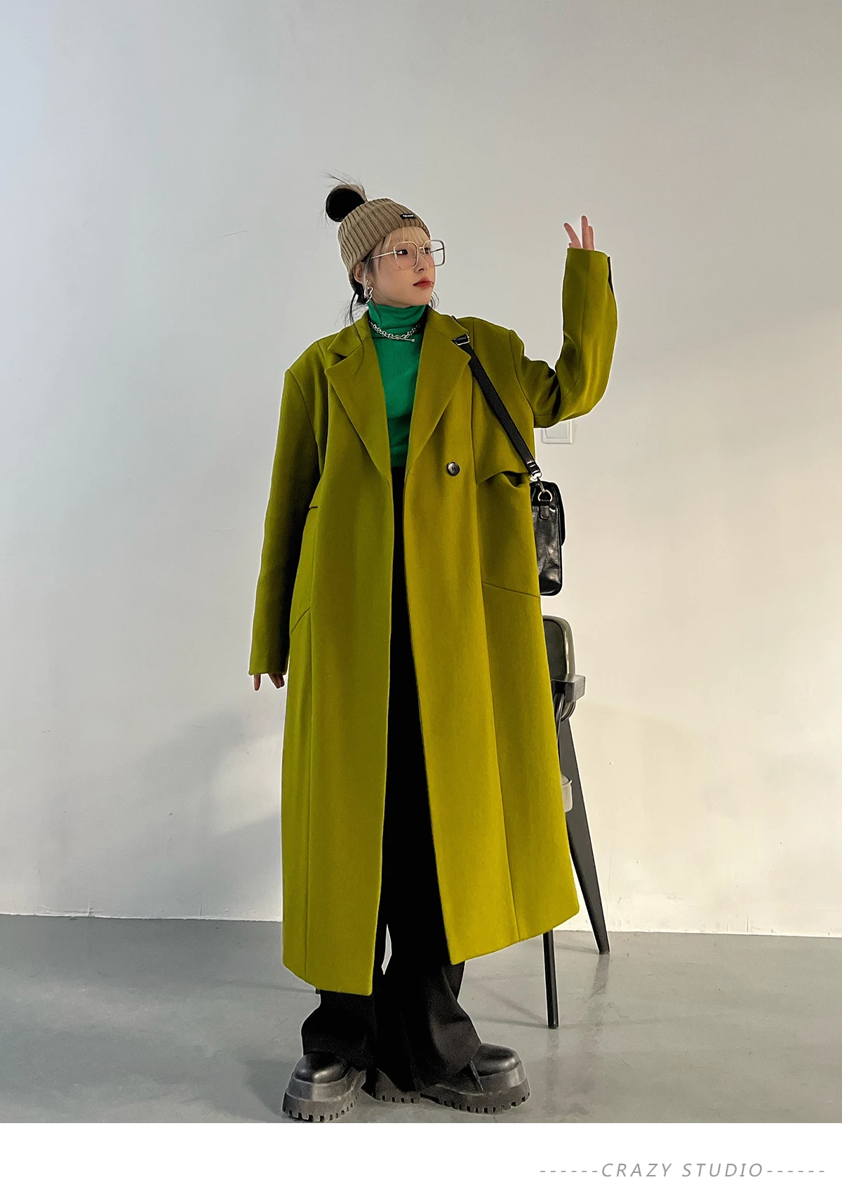 Lautaro Spring Autumn Long Green Oversized Trench Coat for Women Single Button Loose Luxury Casual Overcoat Korean Fashion