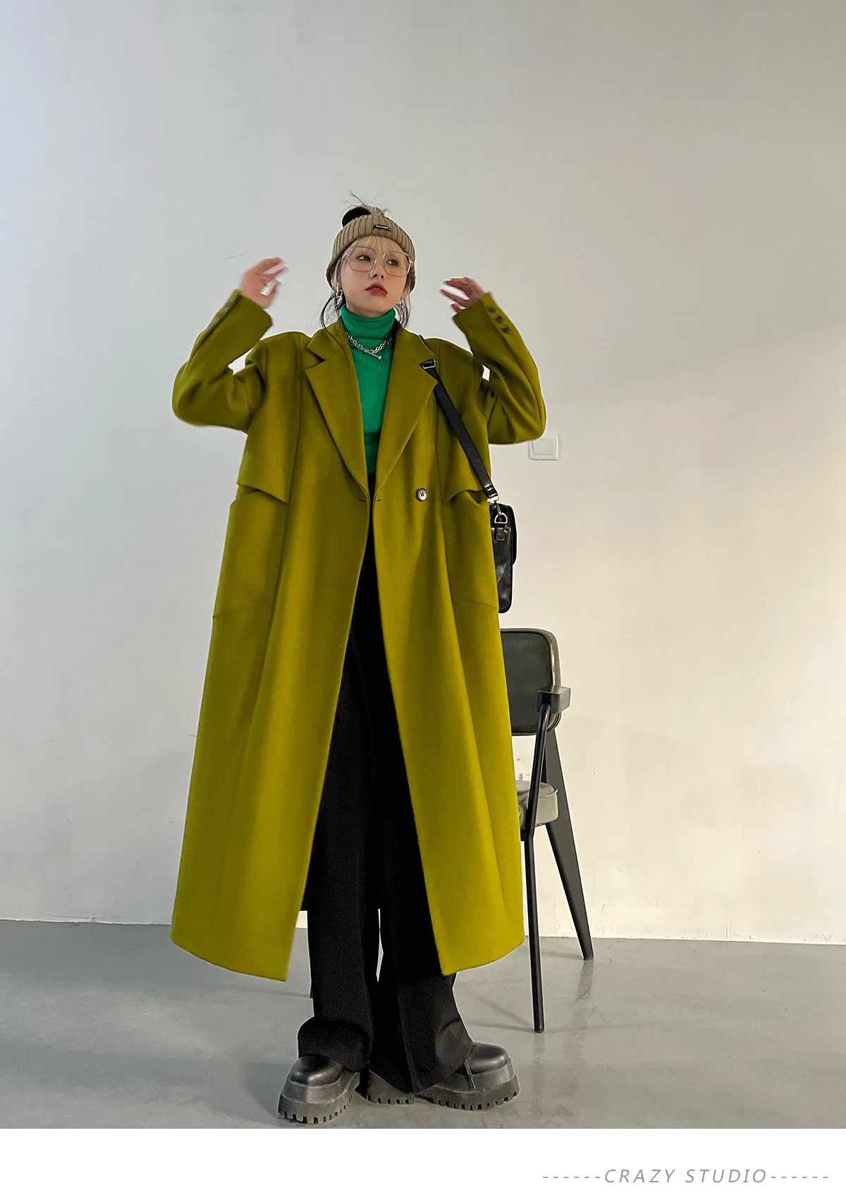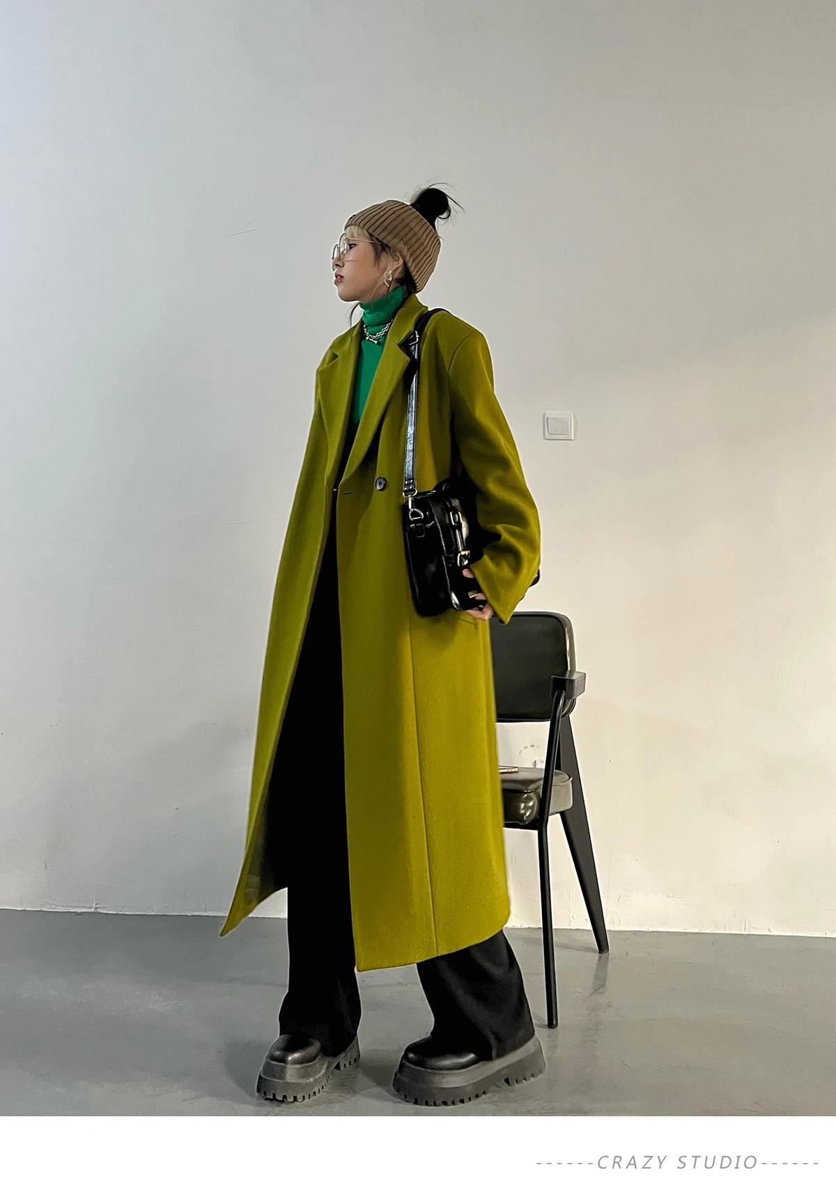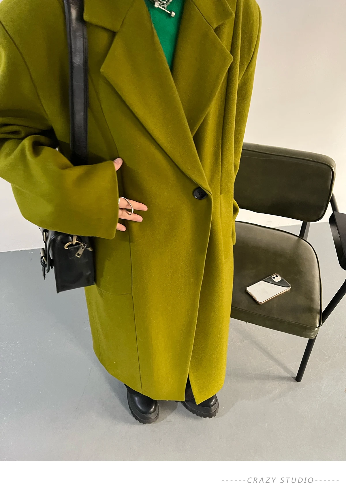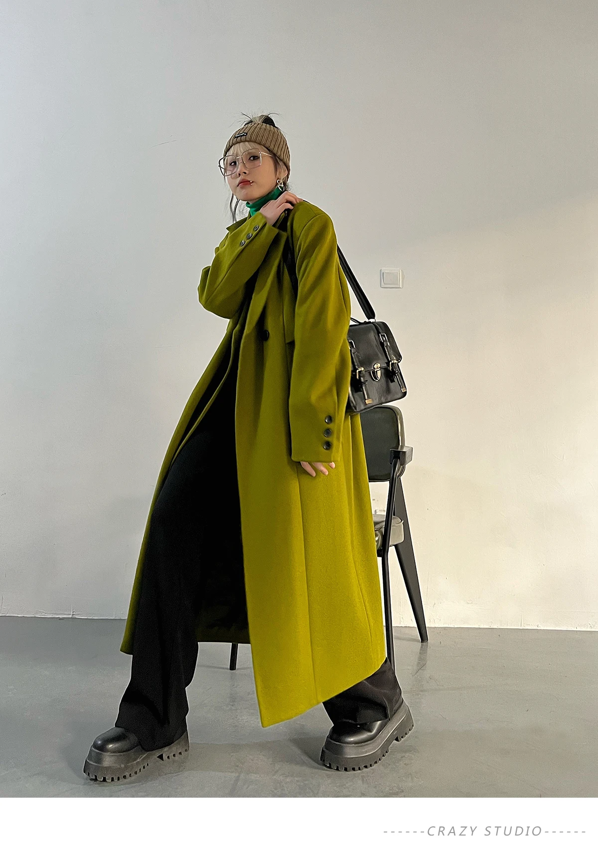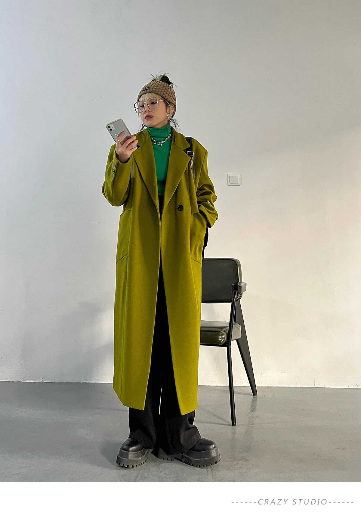 Lautaro Spring Autumn Long Green Oversized Trench Coat for Women Single Button Loose Luxury Casual Overcoat Korean Fashion