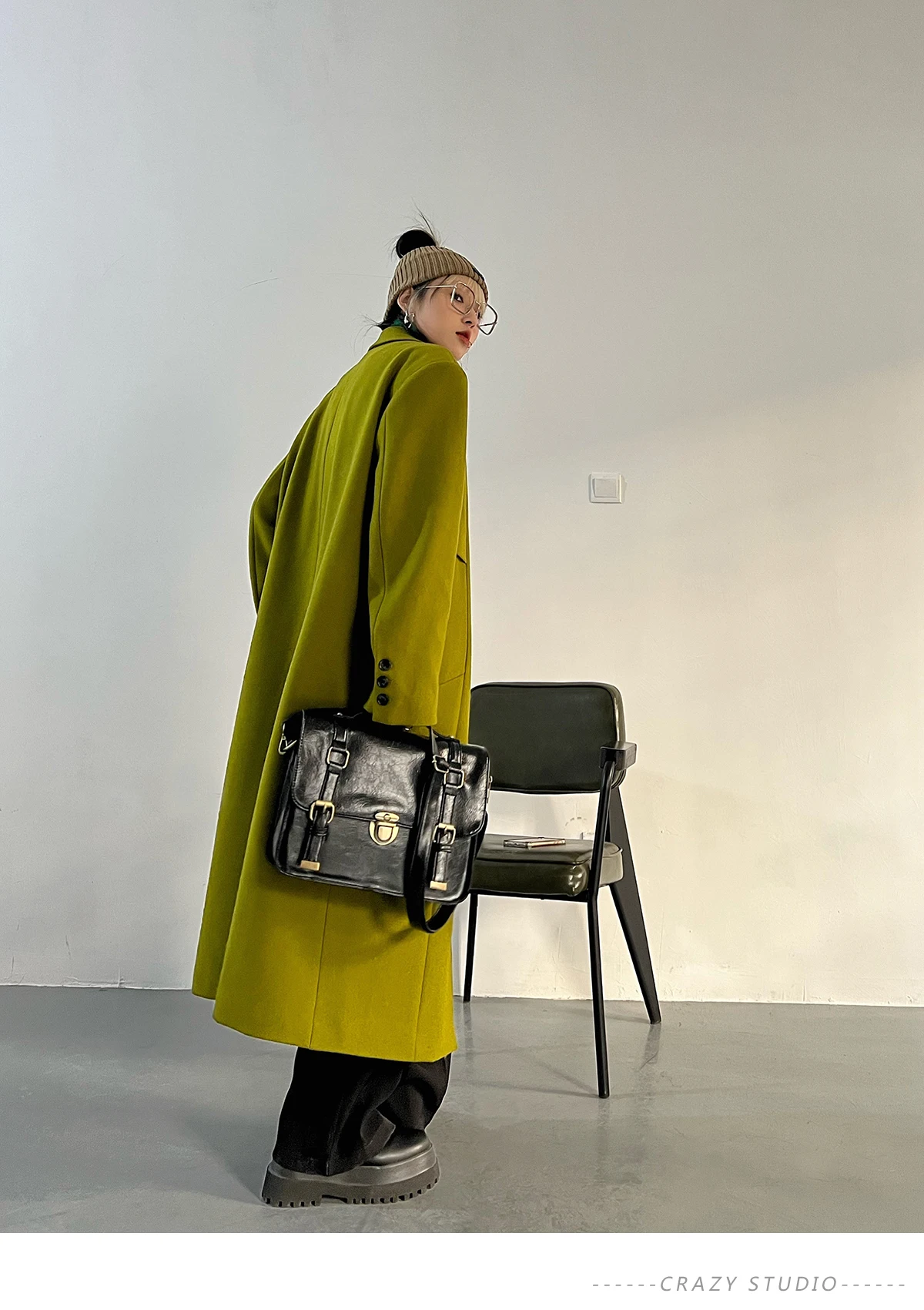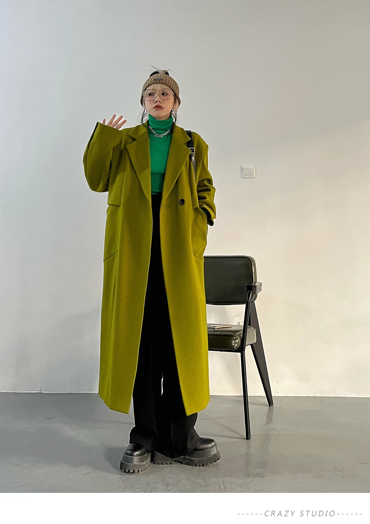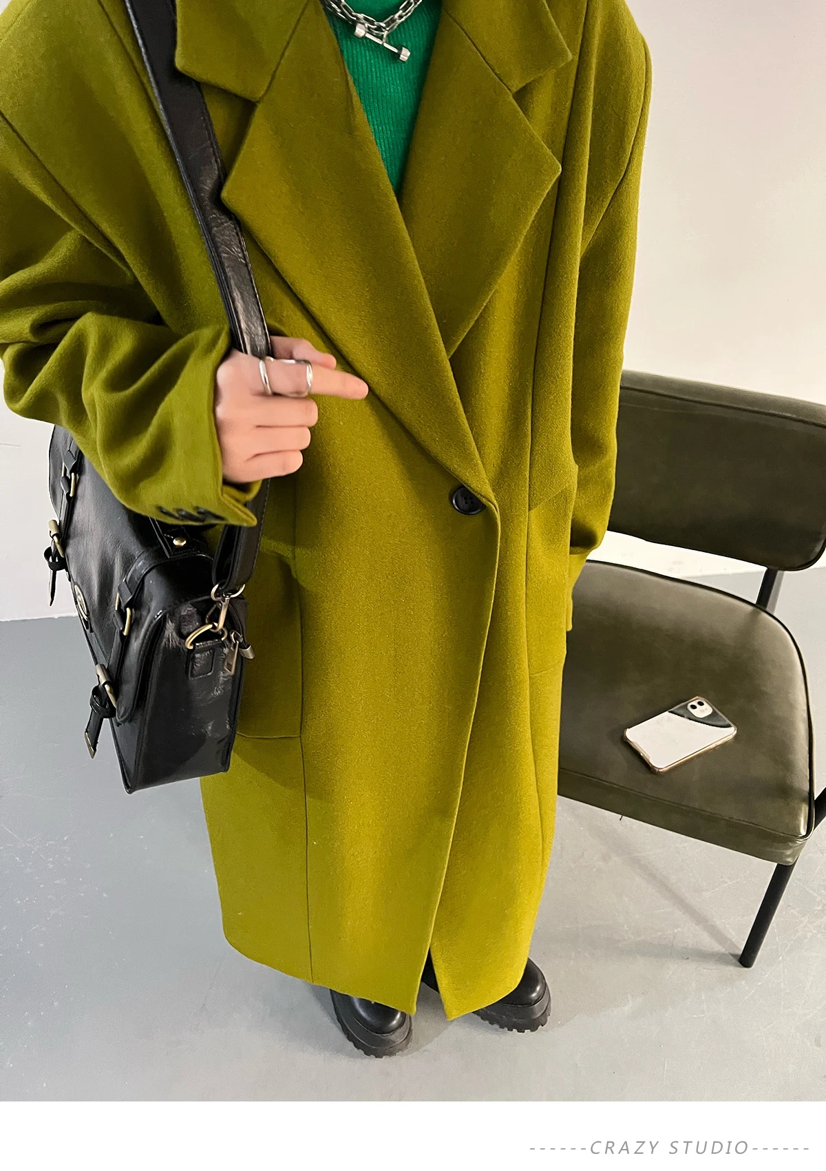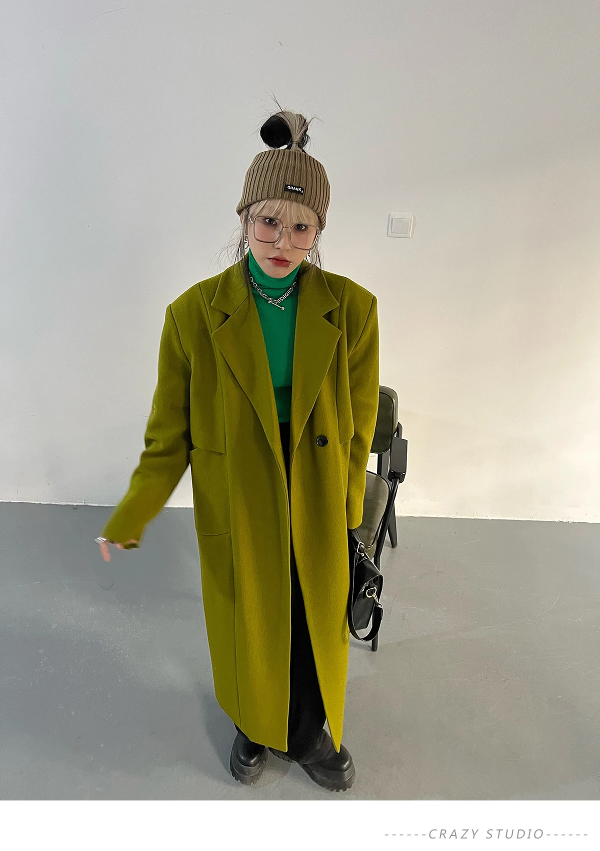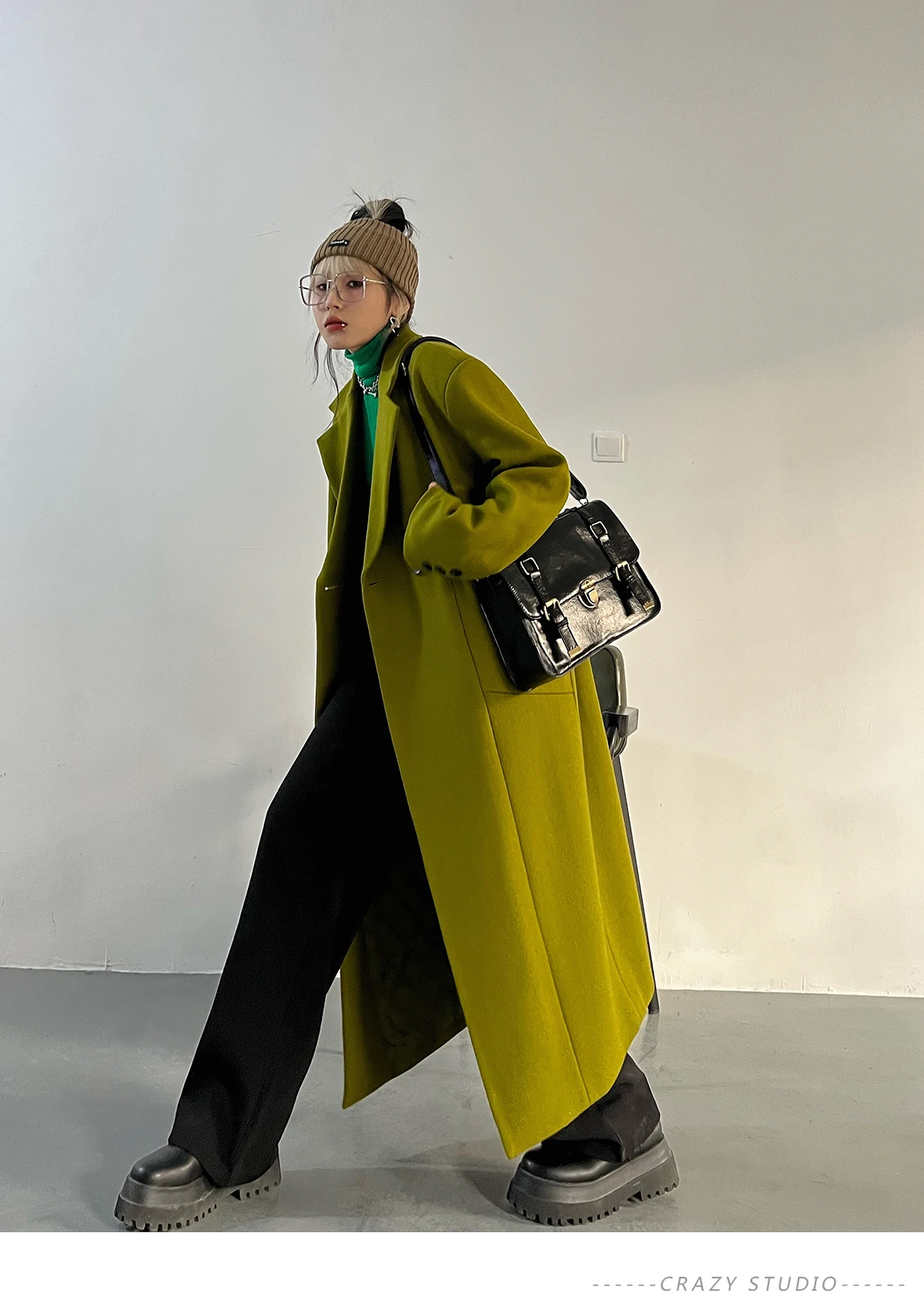 Lautaro Spring Autumn Long Green Oversized Trench Coat for Women Single Button Loose Luxury Casual Overcoat Korean Fashion