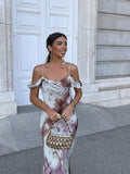 Women Fashion Printed Suspender Maxi Dress Female Vintage Sleeveless Ruffle Dresses Summer New Chic Beach Long